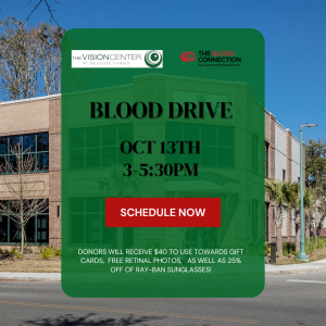 We are thrilled to host a community blood drive right here at The Vision Center at Seaside Farms and we need YOU to help make it a success! Join us Monday, October 13th from 3:00-5:30pm with the Blood Connection’s mobile donor bus. Donors will receive $40 to use towards gift cards (from The Blood Connection), FREE retinal photos to use at their next eye exam, as well as 25% OFF of Ray-Ban sunglasses! Donating blood is a simple, meaningful way to make a difference. To make that happen, you can schedule your appointments in advance. You also get some yummy snacks to help you replenish after donating! Just click the button below to schedule your time and thank you for donating! Walk-ins are welcome, but scheduled donors will be prioritized.